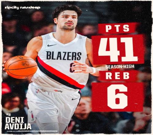 據(jù)統(tǒng)計(jì),這是阿夫迪亞自加盟開(kāi)拓者以來(lái)的單場(chǎng)最高得分和本賽季的得分新高,同時(shí)也是他開(kāi)拓者生涯的首場(chǎng)40+得分比賽。