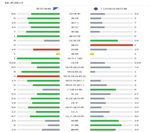 北京時(shí)間1月15日,2023-2024賽季德國足球甲級(jí)聯(lián)賽第17輪,霍芬海姆主場迎戰(zhàn)門興格拉德巴赫。比賽開始后,霍芬海姆率先打破僵局,克拉馬里奇主罰點(diǎn)球命中,為球隊(duì)取得領(lǐng)先。隨后不久,阿斯拉尼送出助攻,倫佩爾推射得手,進(jìn)一步擴(kuò)大優(yōu)勢(shì)。上半場補(bǔ)時(shí)階段,克拉馬里奇接隊(duì)友傳球后冷靜破門,完成個(gè)人第二粒進(jìn)球。緊接著,倫佩爾送出精準(zhǔn)傳球,克拉馬里奇再度破門,上演帽子戲法,將比分優(yōu)勢(shì)繼續(xù)擴(kuò)大。下半場易邊再戰(zhàn),門興格拉德巴赫由賴茨助攻町野修斗扳回一城,縮小比分差距。但霍芬海姆并未放緩攻勢(shì),讓德雷送出妙傳,莫爾施泰特把握機(jī)會(huì)破門得分,鎖定勝局。最終全場比賽結(jié)束,霍芬海姆以5比1戰(zhàn)勝門興格拉德巴赫。