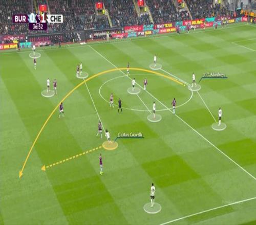 扮演這個角色的常常是庫庫雷利亞,他頻繁提供前插和套邊跑動,這正成為切爾西在面對眾多深度防守球隊時越發(fā)關(guān)鍵的工具。這幫助他們在十一月2-0客勝伯恩利的比賽中,擊破了對手頑固的防守大巴。