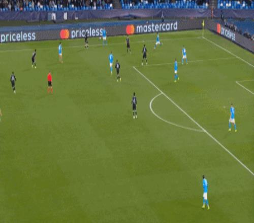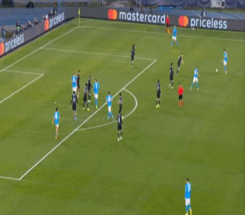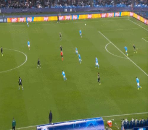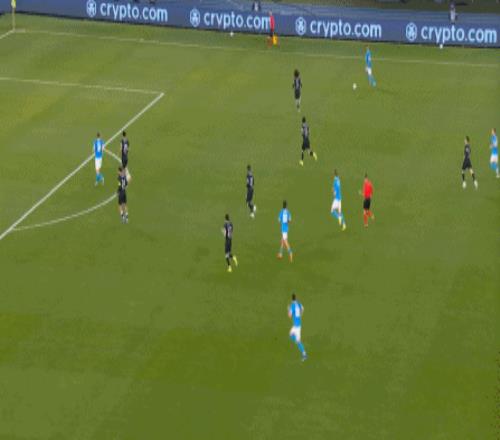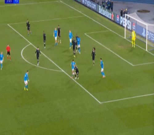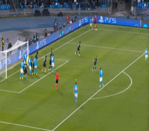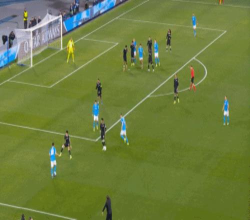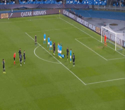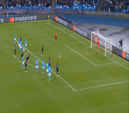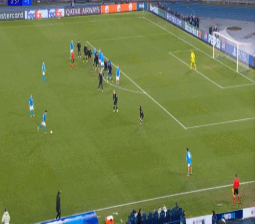 但在這次任意球的主罰過程中,那不勒斯送上了手球犯規(guī),于是任意球直接變成了點球: